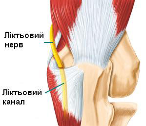 Ліктьовий нерв проходить через кубітальний канал прямо позаду внутрішньої сторони ліктя. Канал утворений м'язом, зв'язкою і кісткою. Його можна намацати на внутрішній стороні ліктя.