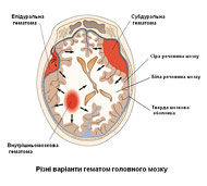 У результаті травми голови може виникнути cубдуральна, епідуральна або внутрішньомозкова гематома.