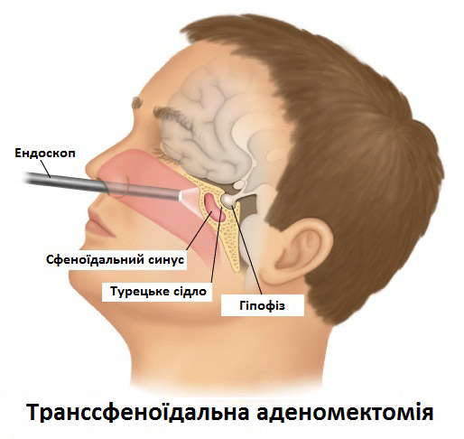 - Операція. Якщо причиною синдрому Кушинга є пухлина, лікар може порекомендувати повне хірургічне видалення. Пухлини гіпофізу зазвичай видаляються нейрохірургом, який проводить операцію через ніс (транссфеноїдальна аденомектомія). Якщо пухлина виникла в наднирниках, легенях або підшлунковій залозі, хірург може видалити її за допомогою стандартної операції або, в деяких випадках, використовуючи мініінвазивні хірургічні методи.