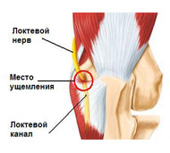 Синдром кубитального канала (ульнарный синдром) – это заболевание, поражающее локтевой нерв в месте, где он пересекает внутреннюю поверхность локтя. Симптомы напоминают болевые ощущения, испытываемые при ударе внутреннего мыщелка. При травме внутреннего мыщелка удар также получает локтевой нерв, расположенный с внутренней стороны локтя. В этом месте нерв проходит через отверстие, называемое кубитальным каналом. При раздражении этой области вследствие травмы или сдавливания, может появиться синдром кубитального канала.