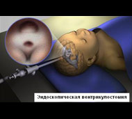 Метод малотравматический и надежный. В отличие от шунтирования, которое длится час-два, операция занимает всего 10-20 минут. В каналы мозга заходят специальным устройством - нейроэндоскопом, содержащим мини-камеру. Изображение передается на экран и врачи видят, куда надо вести инструменты, чтобы восстановить отток жидкости. Суть операции заключается в создании оттока через дно третьего желудочка во внемозговые цистерны ликворной системы. Новообразованное отверстие создают специальным катетером. В результате - ликвор беспрепятственно вытекает из мозга, человек спасен навсегда. Больше не надо повторных операций или замены деталей.